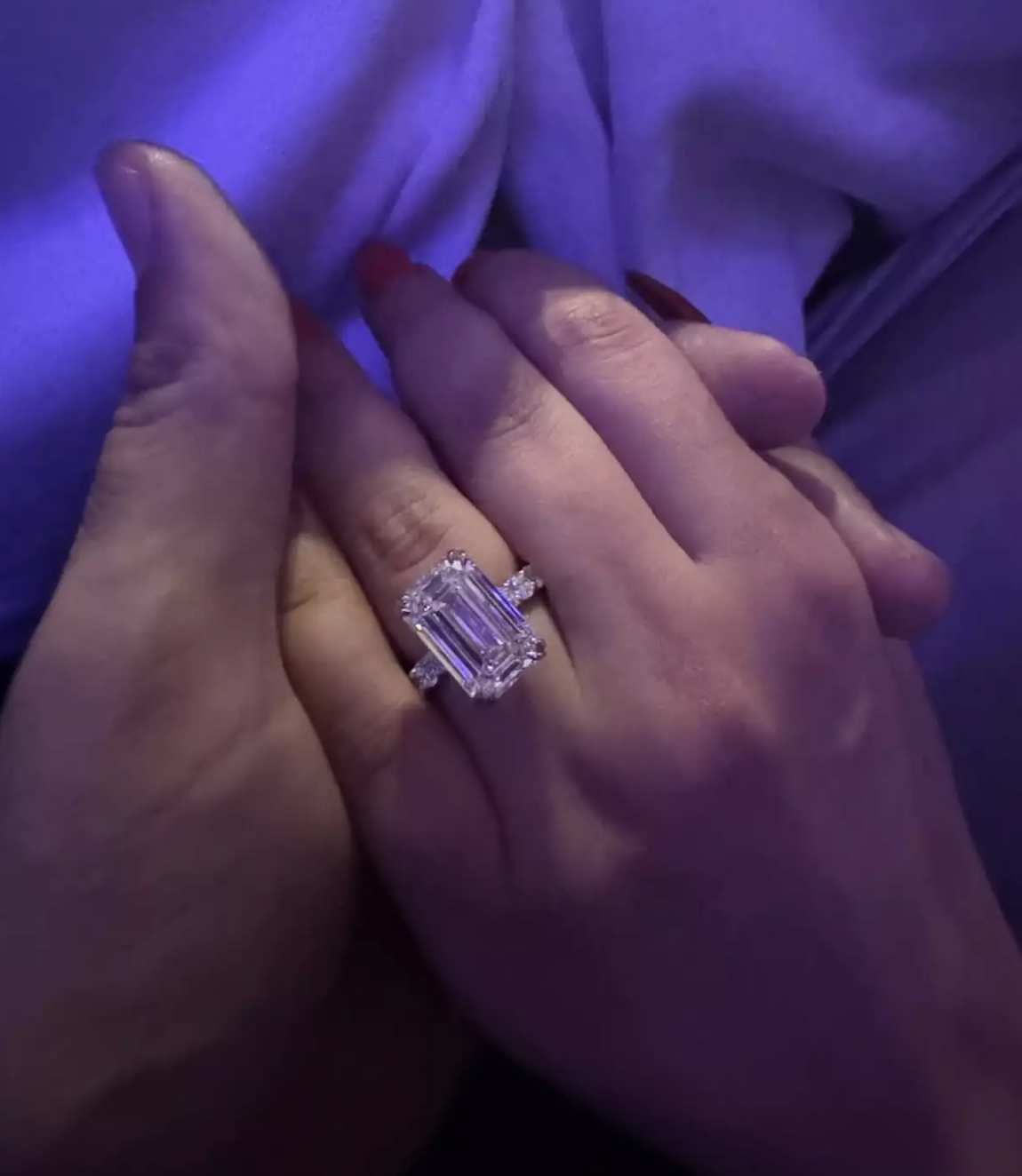 De acuerdo con People, se trata de un diseño del joyero Eric The Jeweler de Mavani & Co. El diamante tiene corte esmeralda y 11.53 kilates, y tiene un valor estimado de 1.1 millones de dólares.