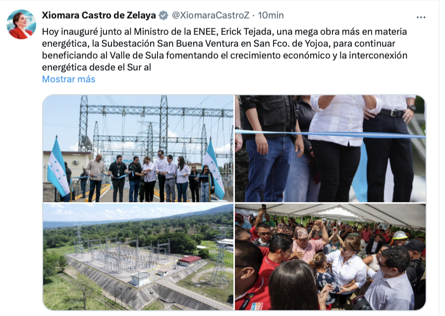 La presidenta de Honduras, Xiomara Castro, inauguró este miércoles en San Francisco de Yojoa, Cortés, los proyectos de ampliación de la Subestación San Buenaventura, una obra que beneficiará a más de 400,000 familias en el Valle de Sula. Durante el acto especial en el norte del país, Castro destacó el esfuerzo detrás de este tipo de inversiones, subrayando que los resultados ya son visibles.
